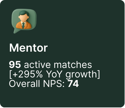 The NPS of 74 highlights both the emotional and practical value of structured mentorship.